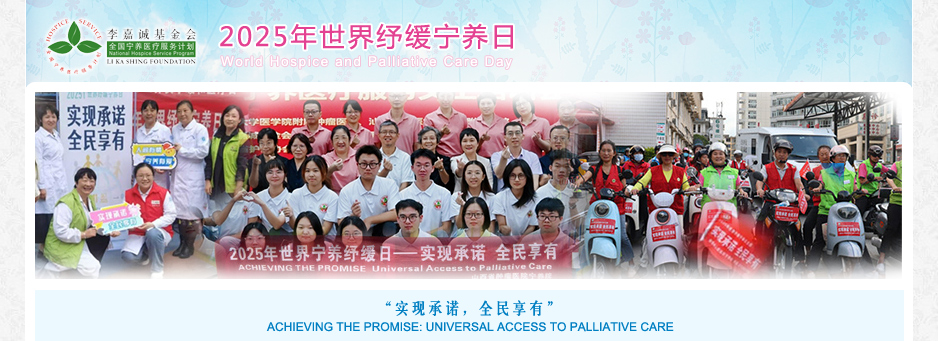 李嘉诚基金会全国宁养医疗服务计划办公室自2011年起推动各地宁养院开展「世界纾缓宁养日」(World Hospice and Palliative Care Day)活动,宣传和传播安宁和宁养疗护的理念,以提高社会对安宁疗护的关注度,让更多社会民众知晓宁养服务,让更多有经济困难的晚期癌患及其家庭获得帮助。世界纾缓宁养日为每年十月的第二个星期六,今年的世界纾缓宁养日是10月11日,主题为“实现承诺,全民享有”(英文原文:Achieving the Promise: Universal Access to Palliative Care)。各家宁养院为这个重要日子举办社区活动,宁养院的医生、护士和社工同仁走进乡镇,在卫生院、社区开展义诊和讲座,也有与当地卫生健康委员会合作,举办宣讲活动,也有宁养院尝试通过徒步、骑行、快闪和音乐表演,在医院、小区和公园等去接触民众,藉此将宁养理念的种子撒播在不同的阶层,以提高宁养服务的知晓度,助力推广宁养服务。