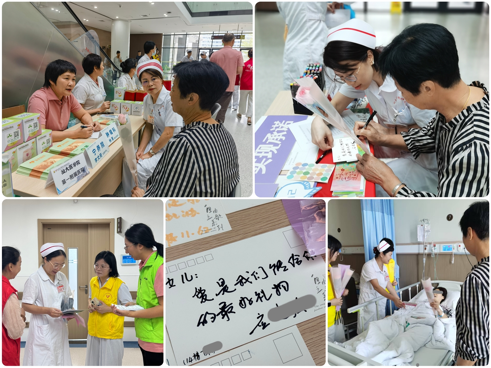 除了身体照护,心灵的慰藉更显珍贵。在生命教育互动区,工作人员鼓励患者/家属在卡片上写下对彼此的真挚祝福,投入“双向道爱信箱”。有患者写给家属“别怕,有你们在我很安心”,也有家属写给患者“我们一起好好过每一天”,笔墨间藏着跨越病痛的深情。一旁的“爱的抱抱”环节同样温暖动人,不少患者/家属投入身着卡通抱抱熊毛绒外套的工作人员怀抱中,在身心贴近的暖意中释放情绪、汲取力量,笑容与泪水交织成最动人的画面。