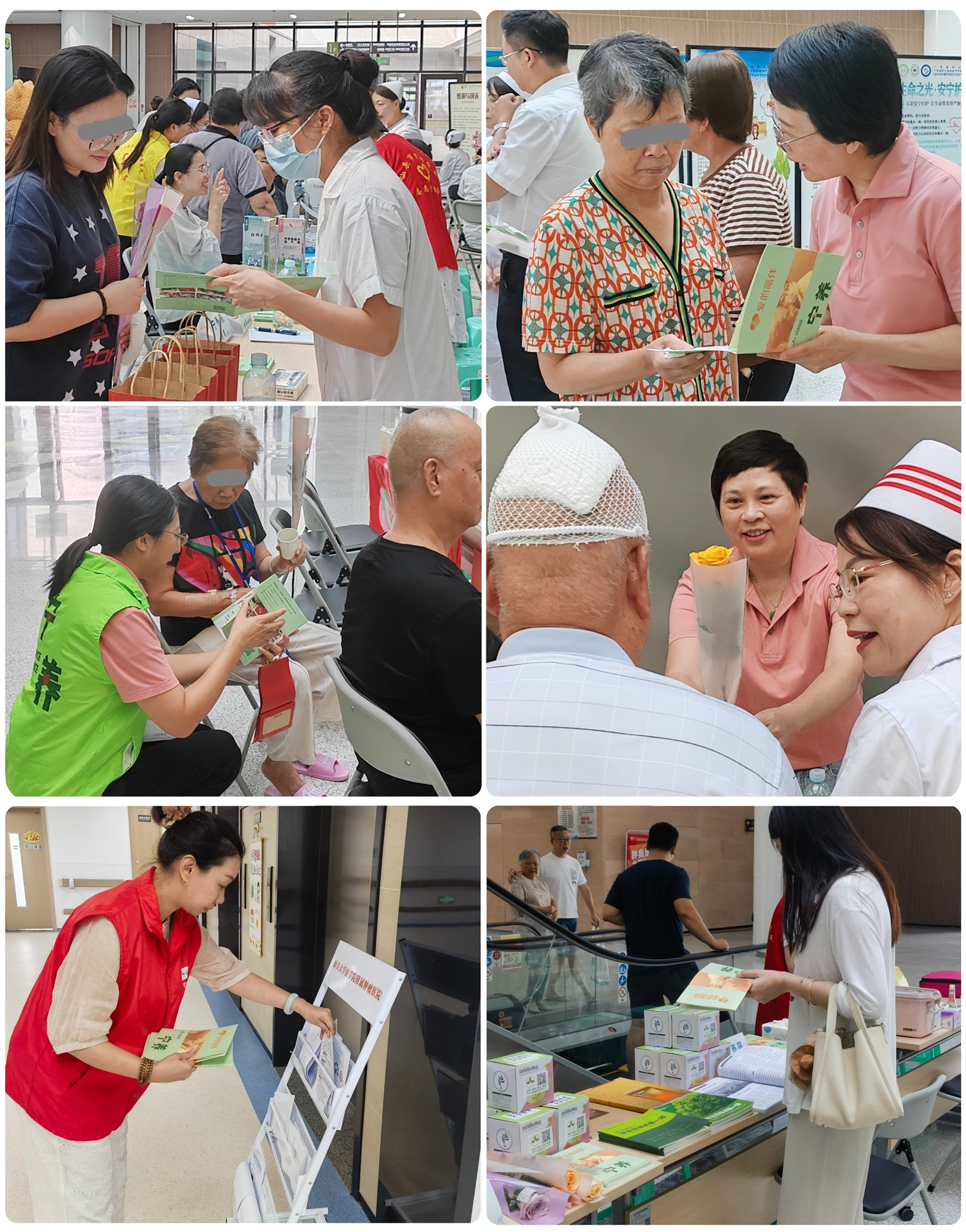 清晨,宁养院及各合作机构的医护人员、汕头宁养医疗服务义工队等爱心志愿者准时集结,现场大屏幕上循环播放“宁养之歌”、宁养项目与安宁疗护宣传片等影视资料。悠扬的歌声及记录片中暖心的医患故事吸引了众多来院就诊的肿瘤患者/家属驻足,浏览展板信息、翻阅宣传书报并了解宁养服务与安宁疗护资讯。