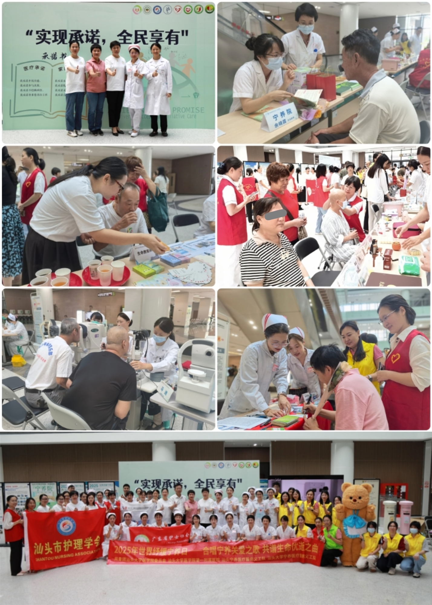 10月11日,一年一度的世界纾缓宁养日如约而至。汕头大学医学院第一附属医院宁养院围绕今年“实现承诺,全民享有”的主题,联合汕头大学医学院附属肿瘤医院、汕头大学·香港中文大学联合汕头国际眼科中心、广东省护士协会安宁疗护护士分会、汕头市护理学会安宁疗护专业委员会多家医疗组织机构,在汕头大学医学院附属肿瘤医院新院区共同举办名为“同唱宁养关爱之歌,共谱生命优逝之曲”的温情义诊宣传活动。传播宁养服务与安宁疗护理念,发挥附一公益慈善品牌力量,推动鮀城安宁疗护服务网络构建。