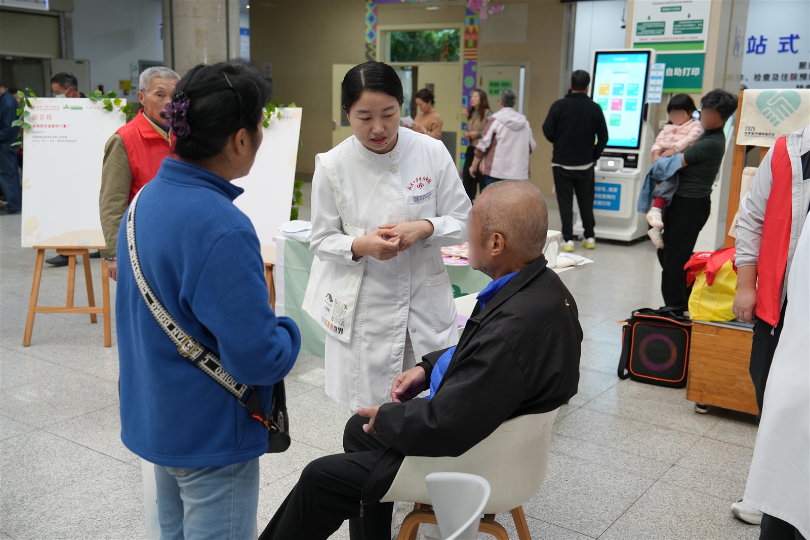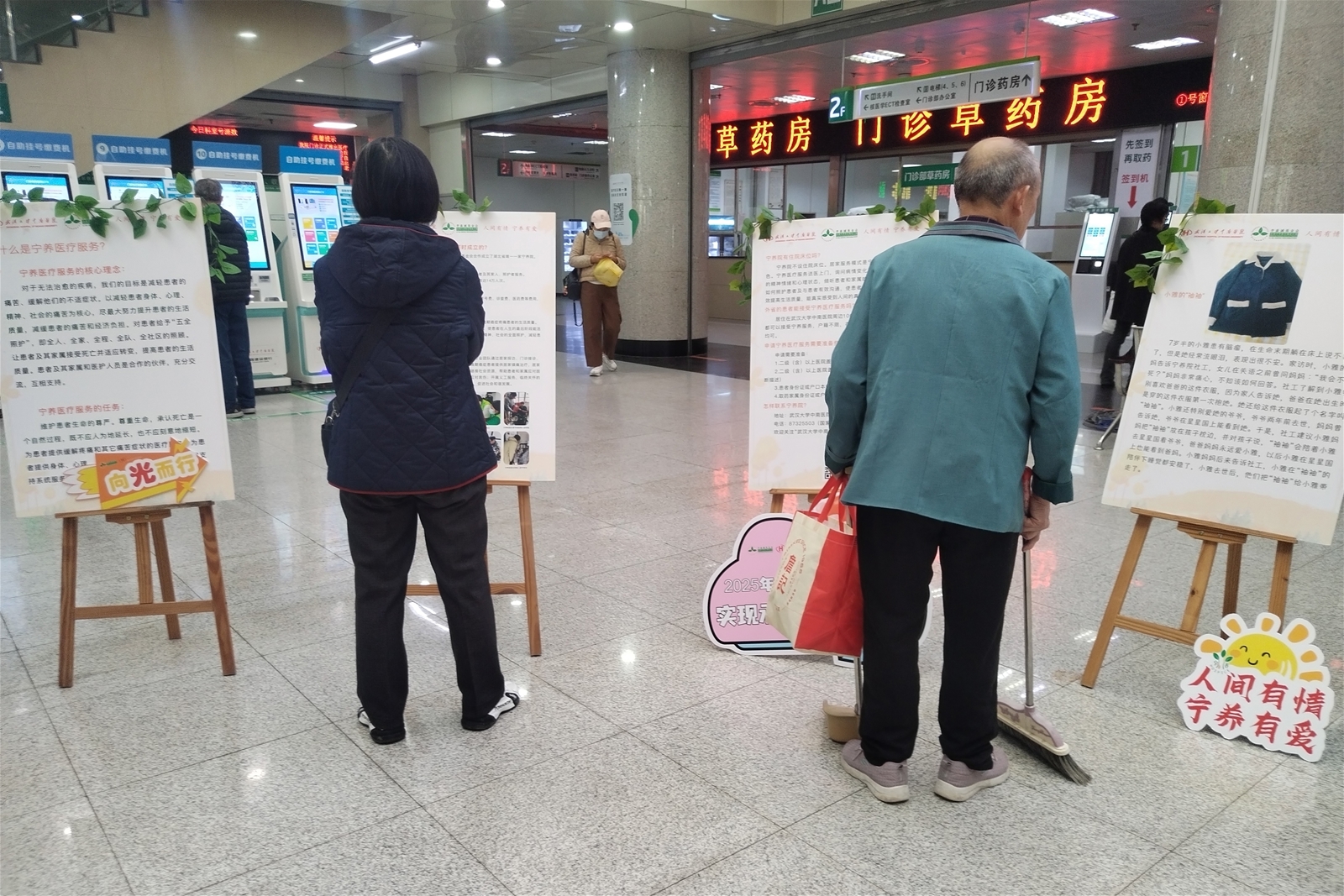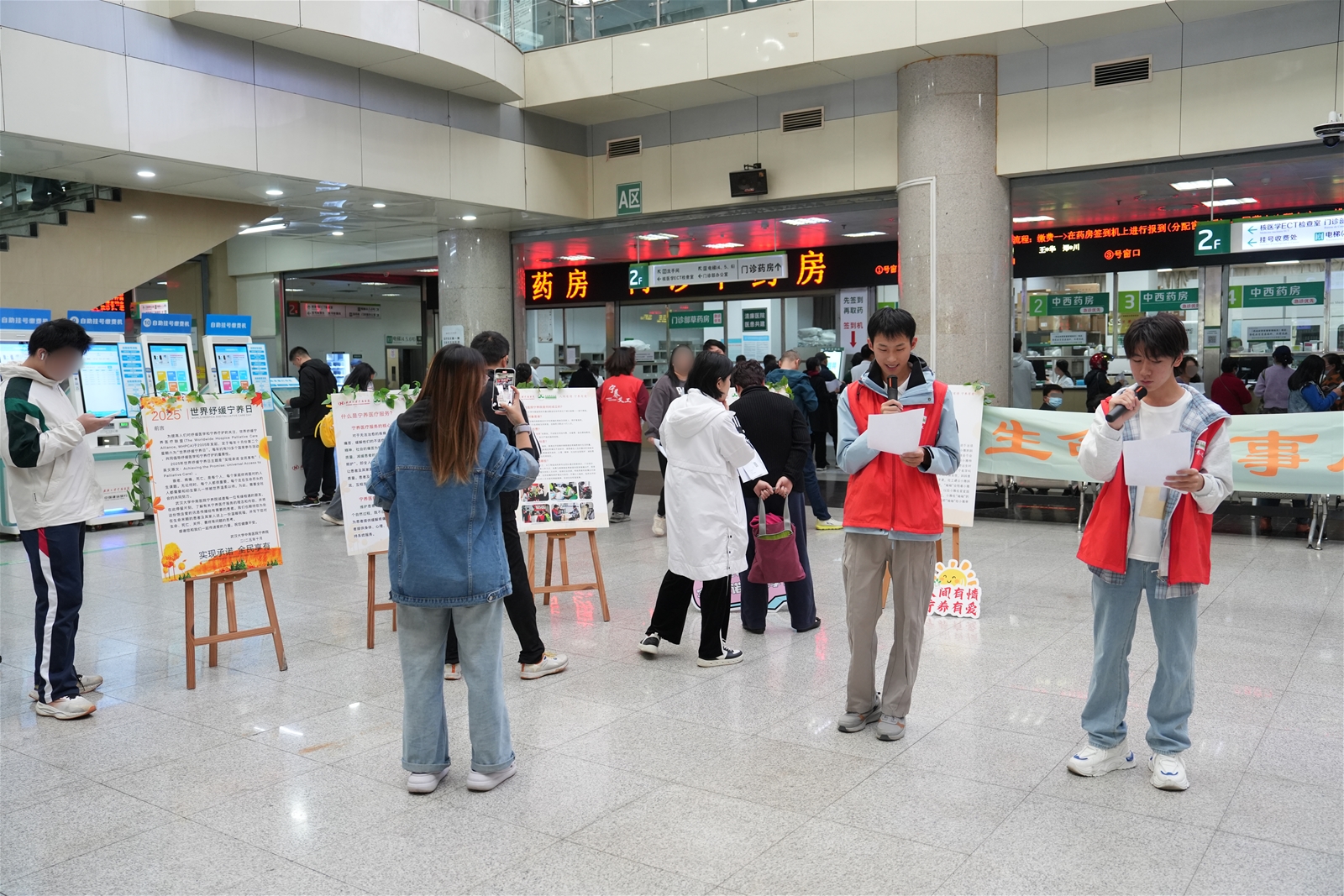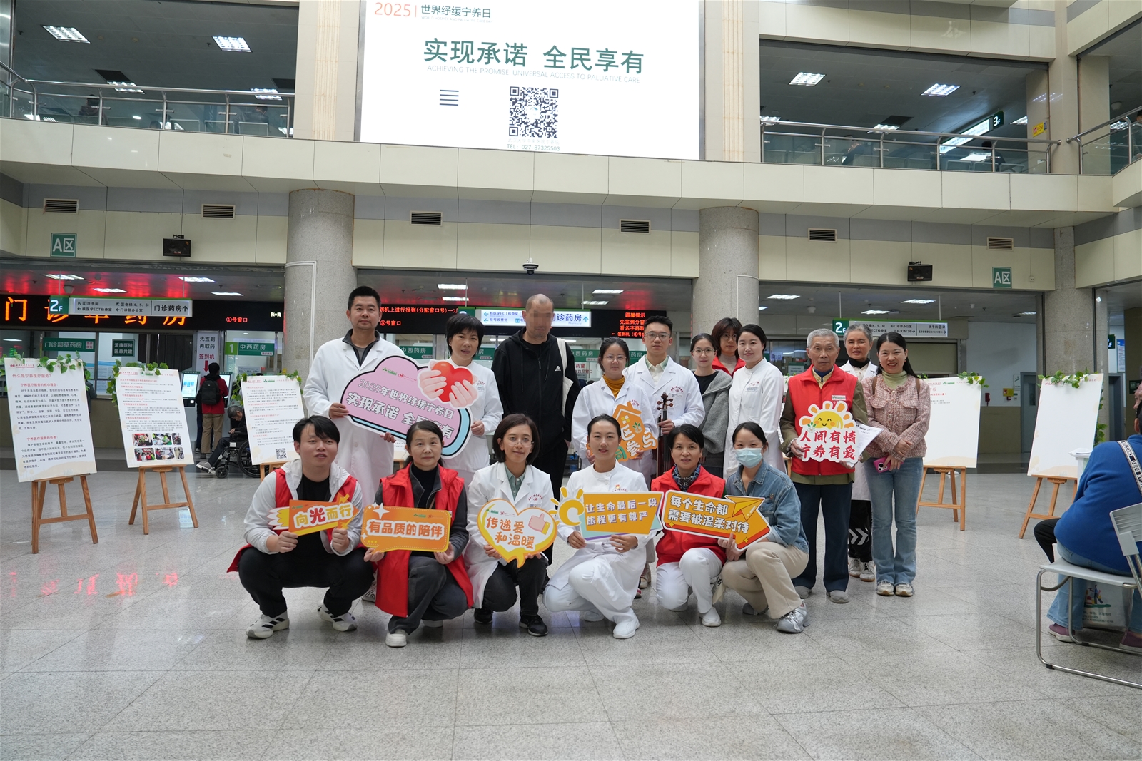 10月23日下午,系列活动在中南医院门诊大厅温情启幕。大厅屏幕上醒目的活动主题,与十余块温馨的宁养宣传展板,共同营造出庄重而温暖的氛围。