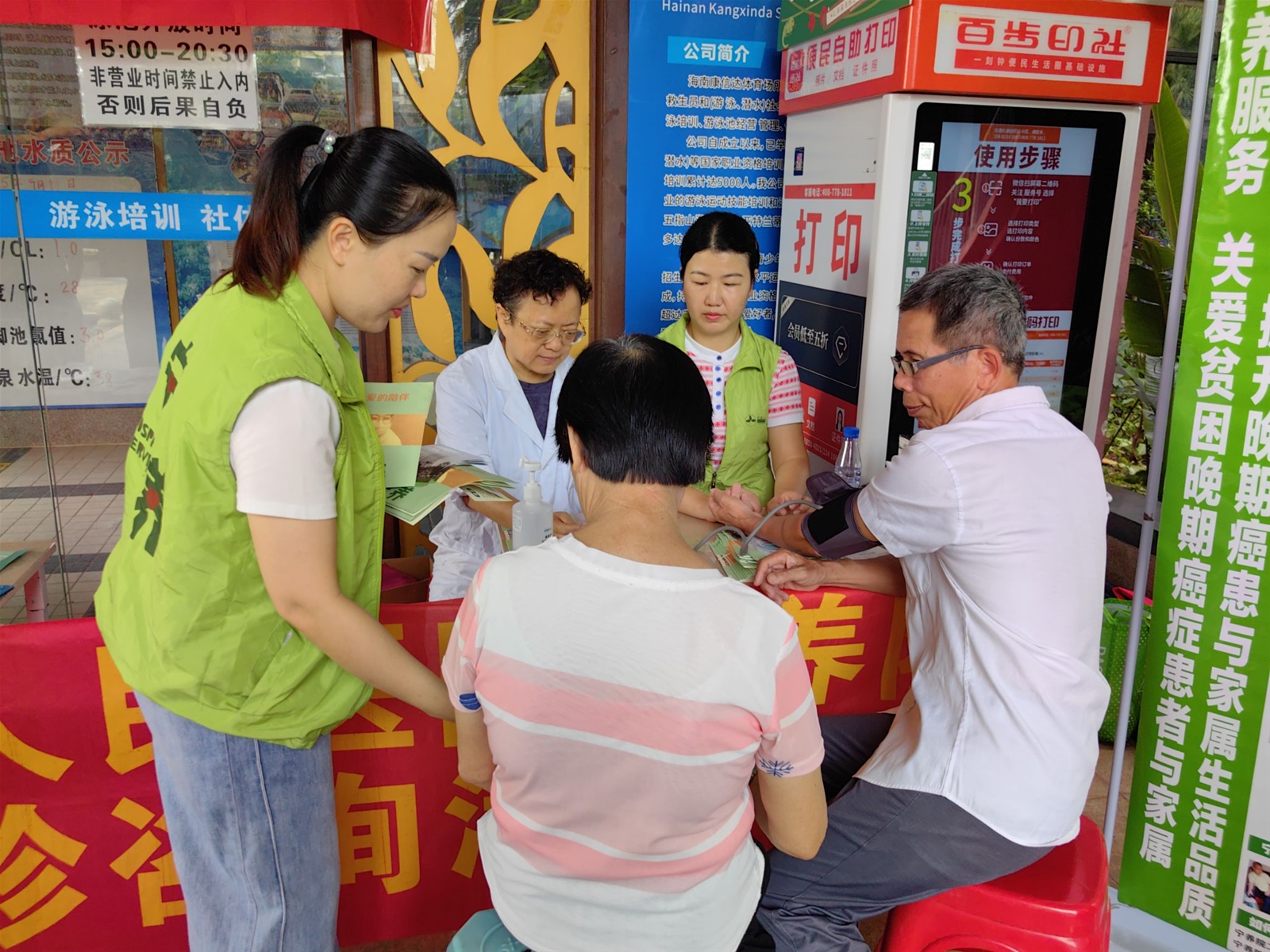 围绕晚期患者疼痛管理、症状控制、心理疏导等核心需求,为居民提供一对一诊疗服务。医护人员不仅细致解答用药疑问、指导居家护理技巧,还为有需要的患者免费测量血压等,在关怀宣教区,通过发放宁养知识手册,耐心讲解宁养服务的意义和流程,帮助居民正确认识晚期患者照护理念,减少认知误区。