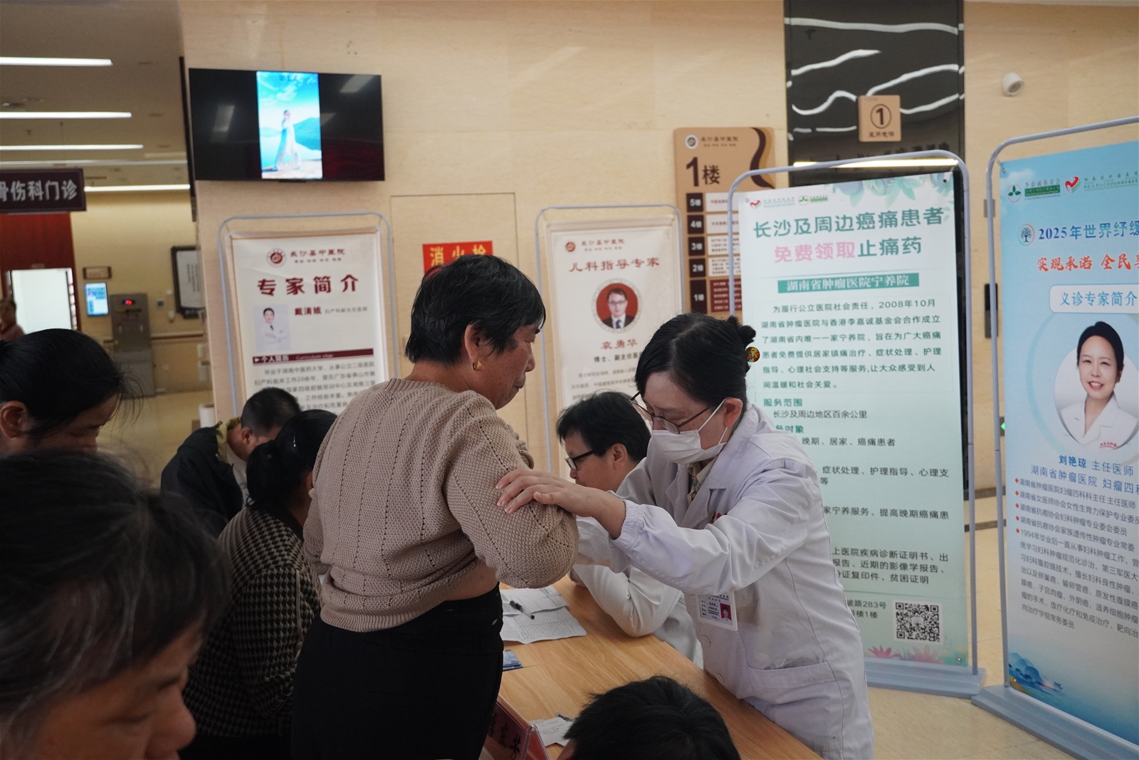 义诊区内,来自湖南省肿瘤医院的胸部肿瘤科、消化内科、中西医结合科、肝胆肠外科、妇瘤科五大领域专家,认真细致地为长沙县居民提供病症诊断、用药指导、疼痛评估与心理疏导服务,将优质医疗资源送到基层群众身边,切实解决晚期患者 “看病远、咨询难” 的问题,让 “在家门口享专业服务” 的愿景照进现实。