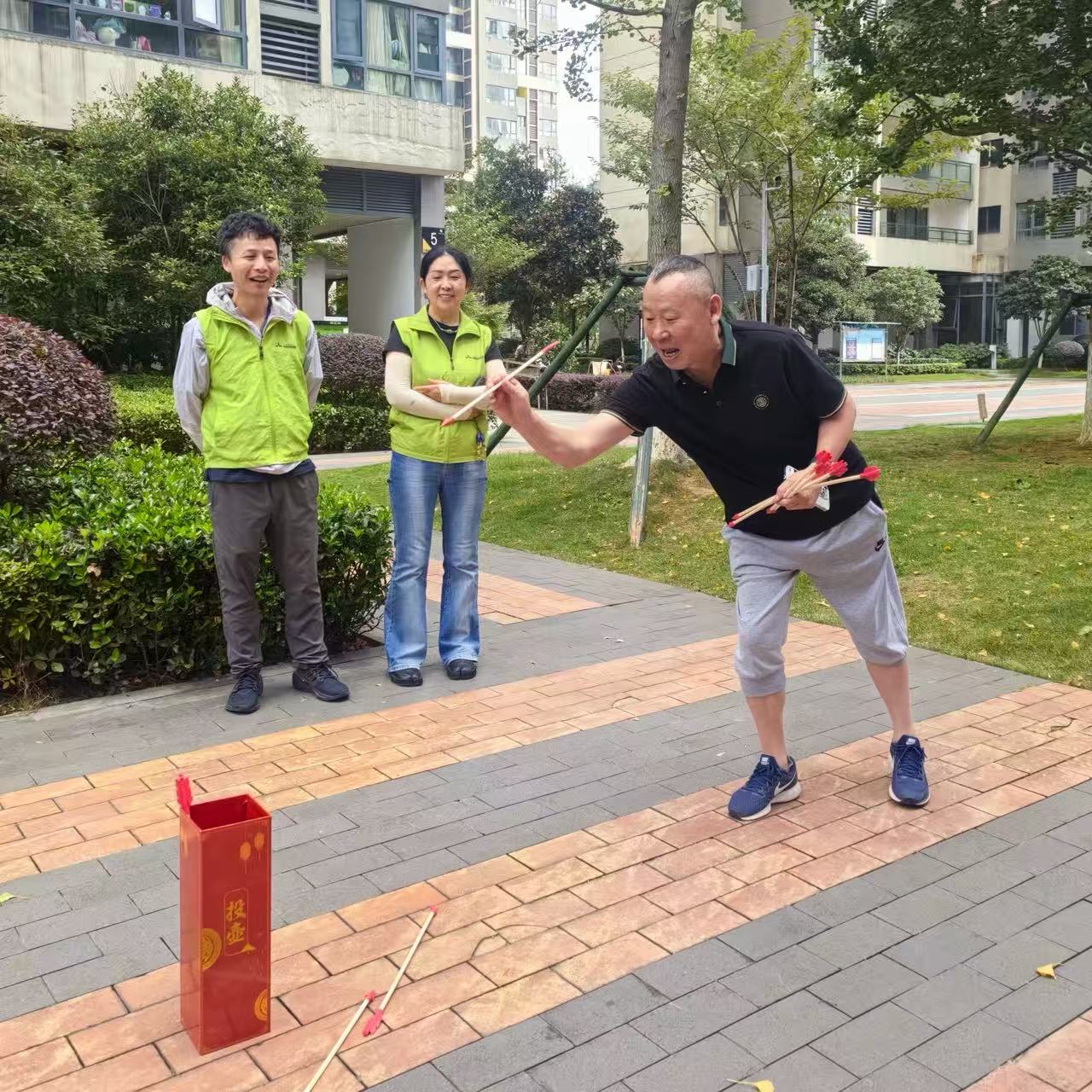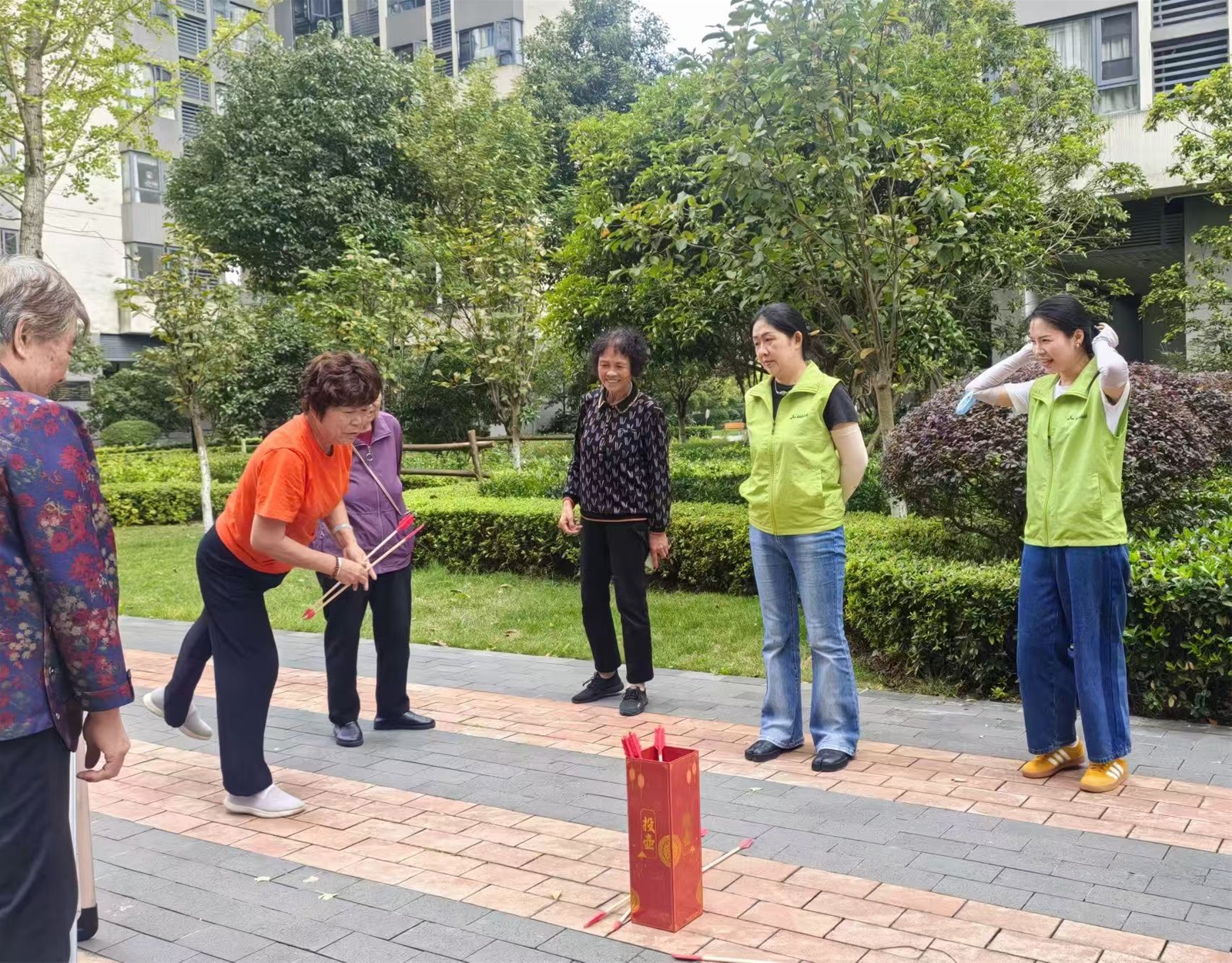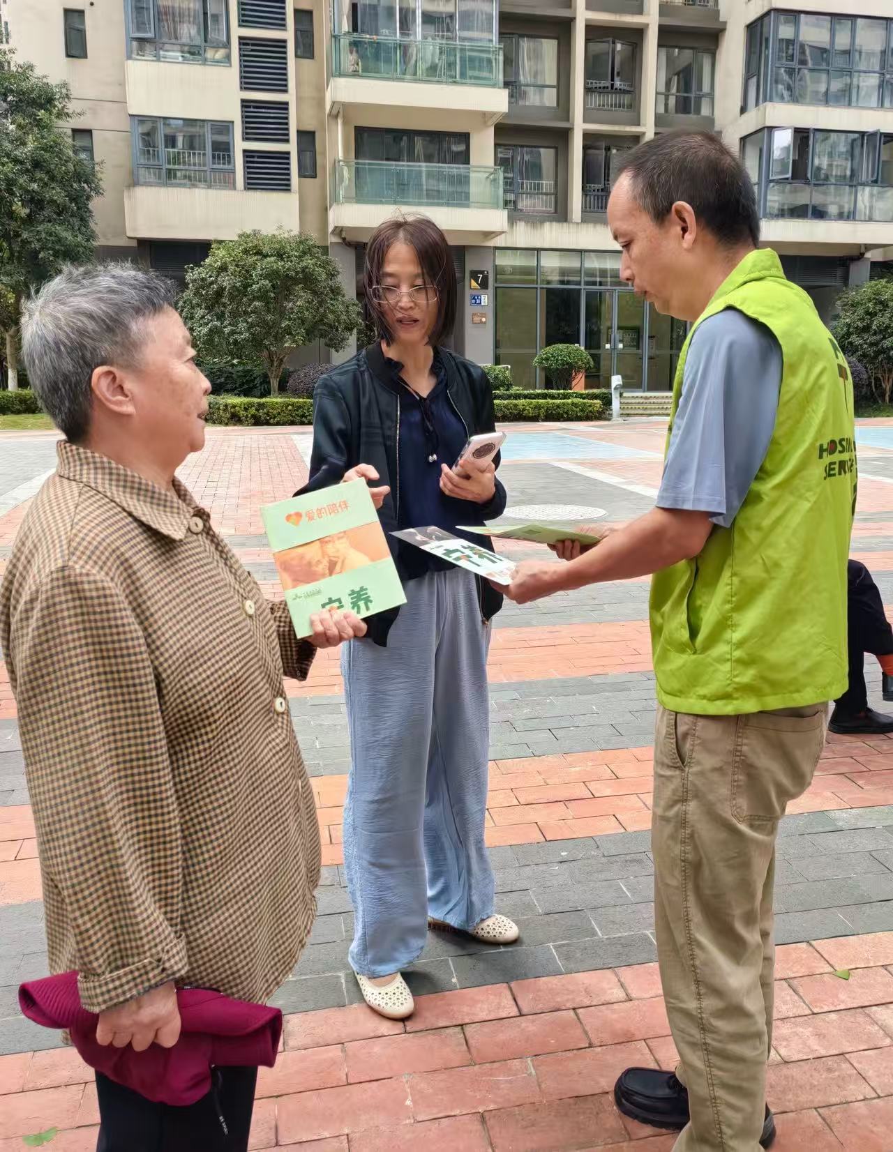 活动的第二部分在社区中心广场展开。现场设立了健康咨询台,为居民提供免费咨询服务。人们有序排队,或低声询问,或凝神倾听。一位前来咨询的李女士表示,她的父亲正处于癌症晚期,全家人承受着巨大的照护压力和精神煎熬。“今天才知道有安宁疗护这种服务。刚才和宁养院王医师聊了聊,心里感觉轻松了很多,也知道了以后该怎么更好地帮助爸爸,以及去哪里寻求专业的帮助。”为使严肃的话题更易于接受,活动现场巧妙设置了互动环节——“投壶”小游戏吸引了大量居民参与。与此同时,宁养院的工作人员向过往居民发放了图文并茂的《安宁疗护知识手册》以及实用的照护支持资源清单。这些精心准备的宣传资料,成为居民带回家的“知识锦囊”,让安宁疗护的理念得以持续传播,让科学的理念和求助的渠道能够被市民带回家,持续发挥作用。