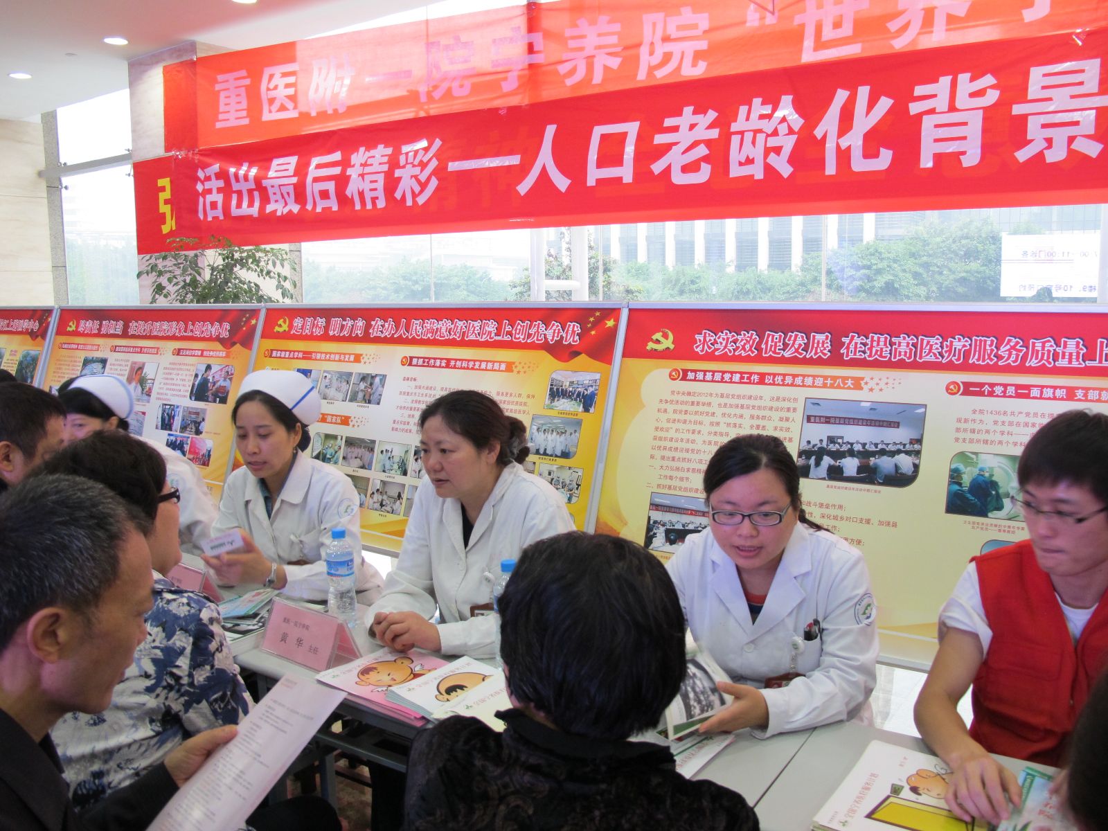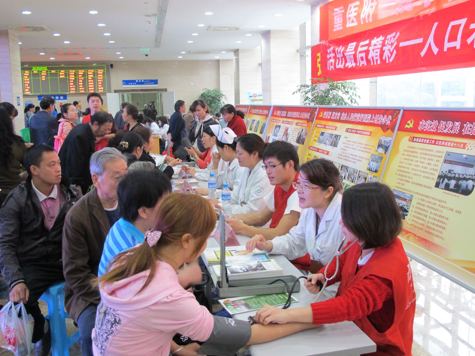 10月10日上午,以“活出最后精彩—人口老龄化背景下的姑息宁养服务”为主题的义诊活动在重庆医科大学附属第一医院门诊大楼2楼大厅举行。活动从早上8点开始,来院就诊的病人和家属对义诊活动表现出很大的兴趣,来咨询的人们络绎不绝。工作人员认真地、耐心地解答各种疑问,并借此向他们宣传人口老龄化背景下的姑息宁养服务,以及宁养服务的理念,服务方式,服务内容等。义工们个个热情高涨,积极投入,免费为患者和家属测量血压,在人群中发放宣传资料,耐心细致地为来咨询的人们解答有关活动的相关知识。通过此次义诊活动,提高了社会对老年人口特别是癌症患者的关注度,重视其精彩生活和尊严死亡的权利,推广宁养服务理念,达到了预期效果,取得了圆满的成功。